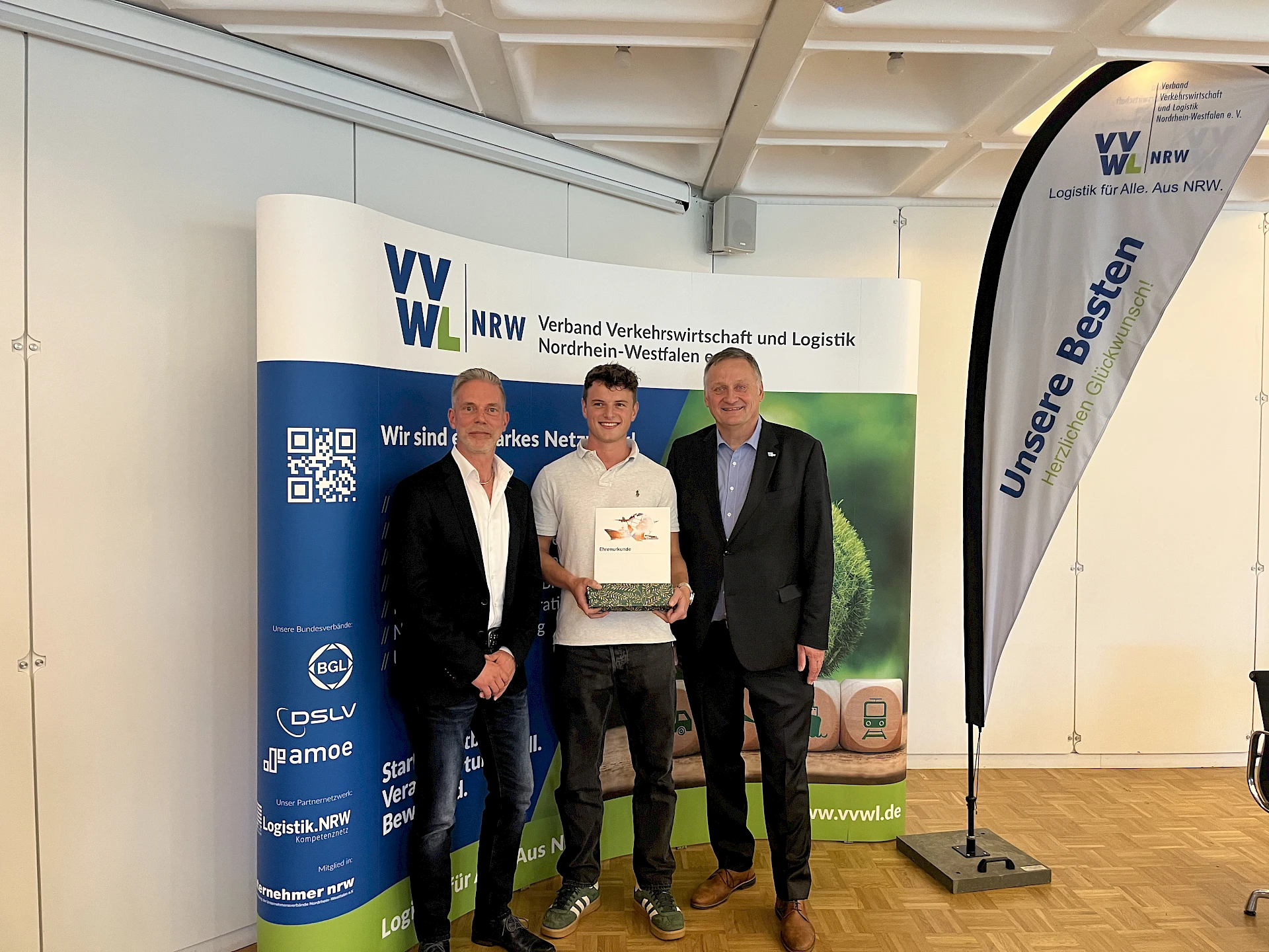 In einer feierlichen Veranstaltung im Festsaal der IHK Nord Westfalen in Münster hat der Landesverband Spedition + Logistik im Verband Verkehrswirtschaft und Logistik Nordrhein-Westfalen (VVWL) e. V. zum 31. Mal die jahrgangsbesten Absolventinnen und Absolventen des Ausbildungsberufs "Kaufmann/-frau für Spedition und Logistikdienstleistung" ausgezeichnet. Insgesamt erhielten 33 Nachwuchskräfte, die ihre Abschlussprüfungen mit der Note „gut“ oder „sehr gut“ bestanden haben, ihre Urkunden aus den Händen von Verbandsgeschäftsführer Dr. Christoph Kösters – begleitet von einem Präsent mit Erinnerungswert: einem exklusiven Actros-Fahrzeugmodell im Maßstab 1:87.