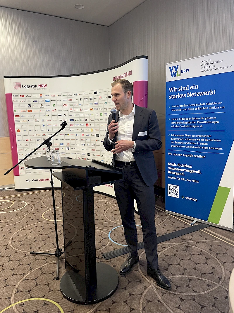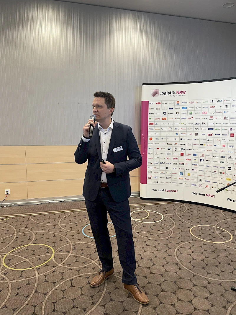 Fabian Gerdes, Leiter Logistik und SCM, Salzgitter Flachstahl GmbH bekannte sich eingangs seines Vortrages leidenschaftlich zum Einzelwagenverkehr, allerdings sei er in der jetzigen Form verbesserungswürdig. Dabei sei die DB Cargo gefragt, aber auch die Verlader. Die Industrie verzweifele an der Infrastruktur. 866.000 Kilometer Stau durch Baustellen auf deutschen Straßen in 2025, 6.000 lt. DB Brückenportal zu ersetzende oder instand zu setzende Brücken im Netz der Bahn würden die Logistik extrem belasten. Der Anstieg der Transportleistung um rund 23 % seit 2021 sei vor Allem darin begründet, dass Betriebe verlagert werden und damit die Transportentfernungen größer würden. Als zukunftsprägend für die Stahllogistik nannte er die Einflüsse von Digitalisierung, AI und Nachhaltigkeit, wodurch Transparenz, Analyse und Energieeffizienz deutlich steigen würden. Wirtschaftliche Nachhaltigkeit dürfe nicht als Konkurrenz zur ökologischen Nachhaltigkeit verstanden werden. Insbesondere werde sich Salzgitter Flachstahl mit eigenem Fachwissen der steigenden Komplexität und den anhaltenden Krisen stellen. Eine (weitere) Anschaffung eigener Assets sei aber nicht beabsichtigt, vielmehr werde mit Partnern an der verlässlichen Kapazitätsbereitstellung gearbeitet; hierzu seien stabile Spielregeln notwendig. Er appellierte, dass Verkehrsträger nicht gegeneinander ausgespielt werden dürften.